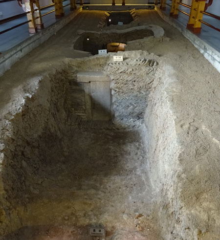 朱然の墓は1984年に発見されたのですが、こちらの家族墓は1996年、三国朱然文物陳列館(展示室のこと?)の第三次拡張工事の際に見つかったとのこと。